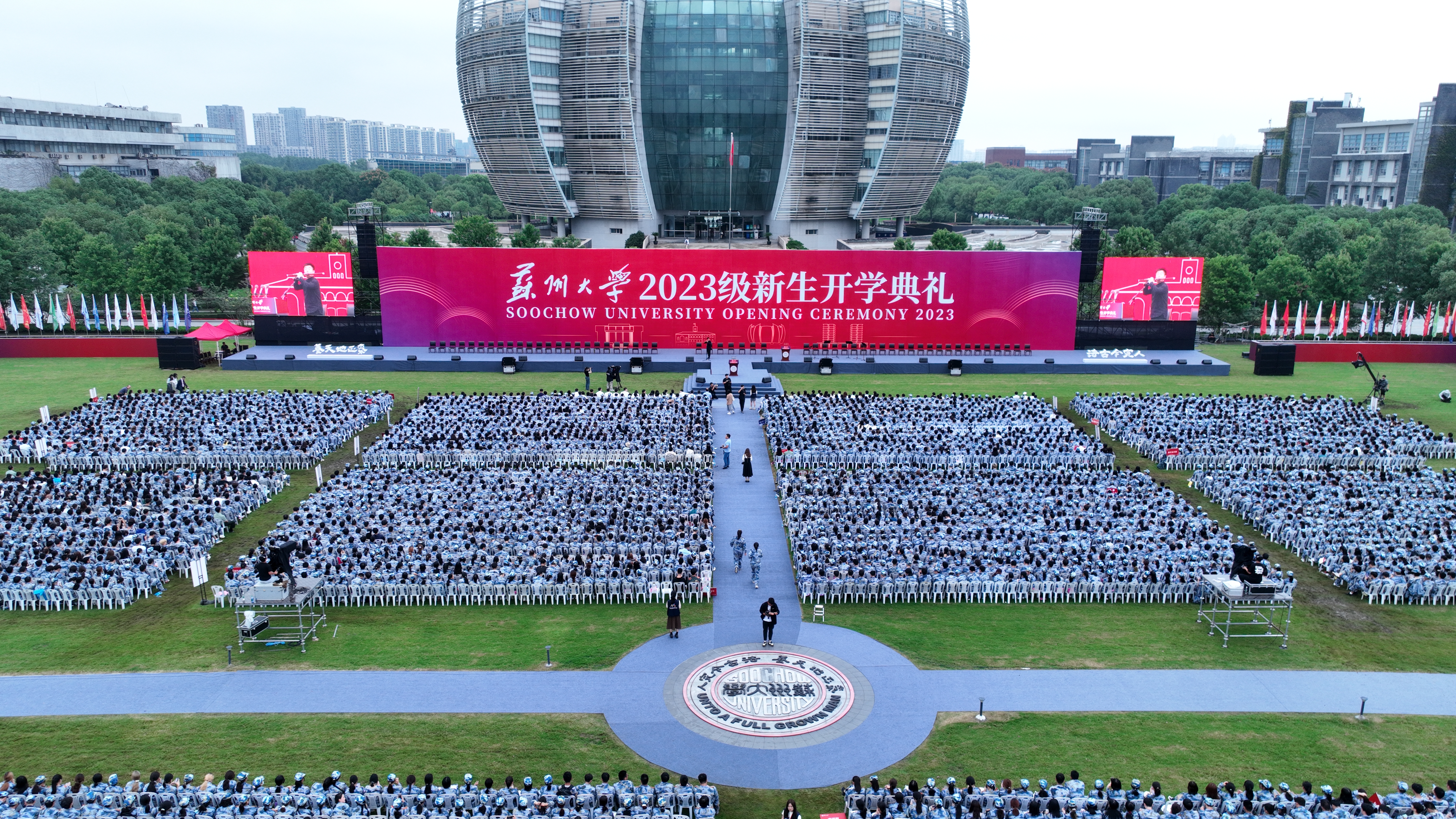 微凉秋日,火热青春。9月24日下午,苏州大学在独墅湖校区恩玲艺术中心户外草坪举行2023级新生开学典礼,13544位新同学的青春新征程从这里启程。