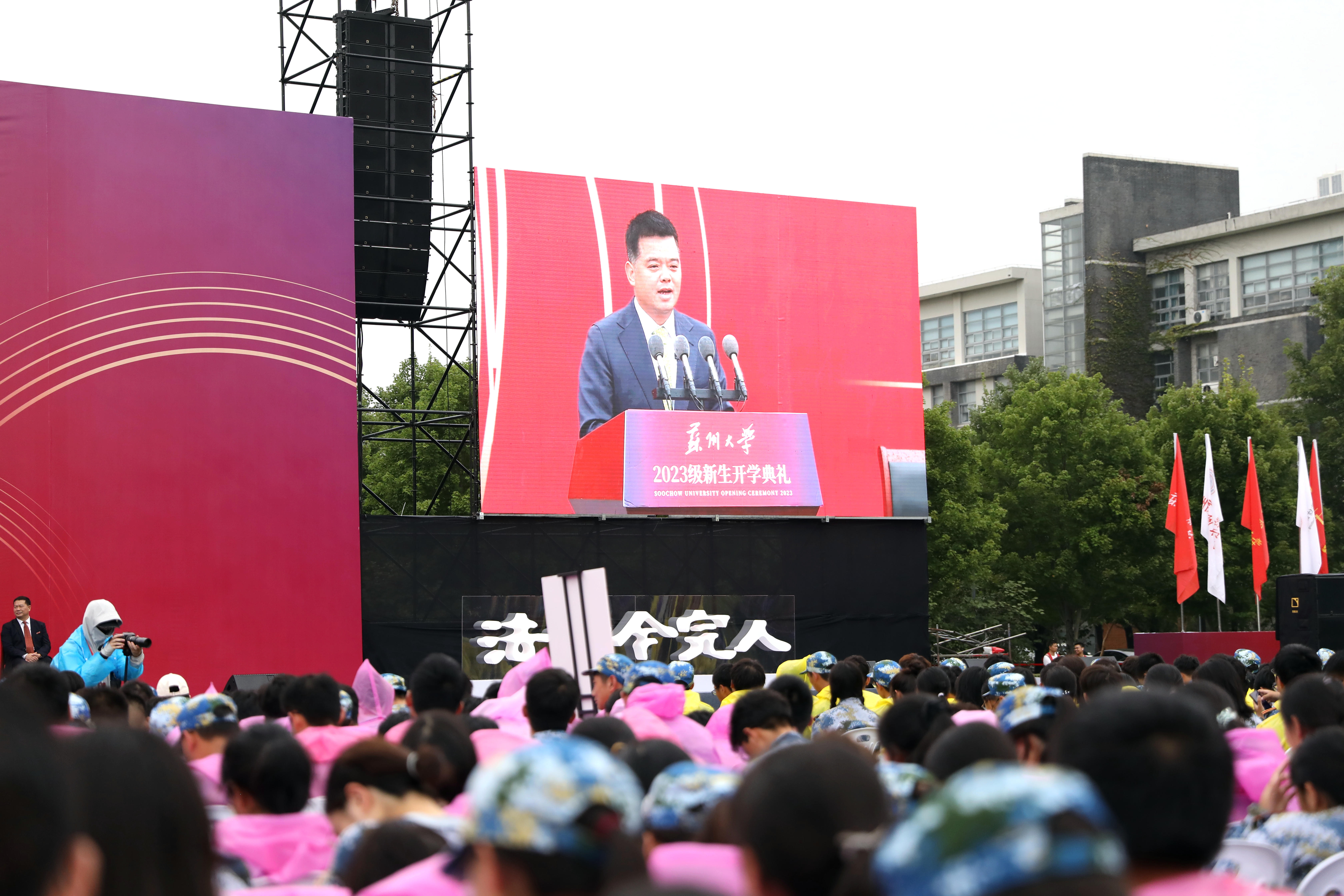 “东吴教泽,历久弥昌;负笈来游,祗率典常。古今完人,天地正气;勉以同符,达者升堂。求真务实,修身穷理;科学民主,经济文章。革故鼎新,相期努力;少年竞爽,振我家邦。”开学典礼尾声,全体新生起立,高举右拳,齐声宣读苏州大学新生入学誓词。伴随着铿锵有力的誓言,一批年轻学子为学校注入了新的蓬勃力量。他们将与这所百年学府风雨同行、紧密相连直至永远。