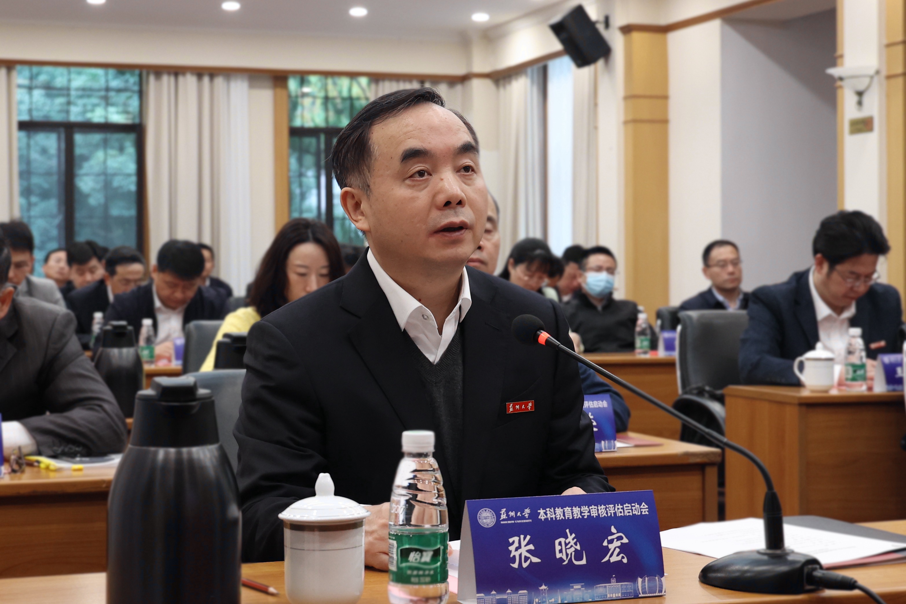 校党委副书记、校长张晓宏向出席启动会的各位领导、专家表示欢迎和感谢。他指出,苏州大学始终高度重视本科教育,近年来认真落实“以本为本”,大力实施“铸魂逐梦”工程,积极构建具有苏大特色的本科人才培养体系。自上一轮本科教学审核评估开展以来,学校扎实推进整改工作,不断强化和巩固本科教育教学工作中心地位。围绕此次迎评工作的准备情况,张晓宏从提高站位,提高对审核评估重要性的认识;全面总结,切实做好审核评估各阶段工作;积极迎评,做好诚恳接受意见的思想准备等三个方面作了汇报。他表示,全校师生将以饱满的工作热情、昂扬的精神状态、积极的迎评态度,全面、真实、充分总结和展示本科教育教学工作,全力配合好、积极服务好各项评估工作,为全省高校新一轮本科教育教学审核评估做好表率。