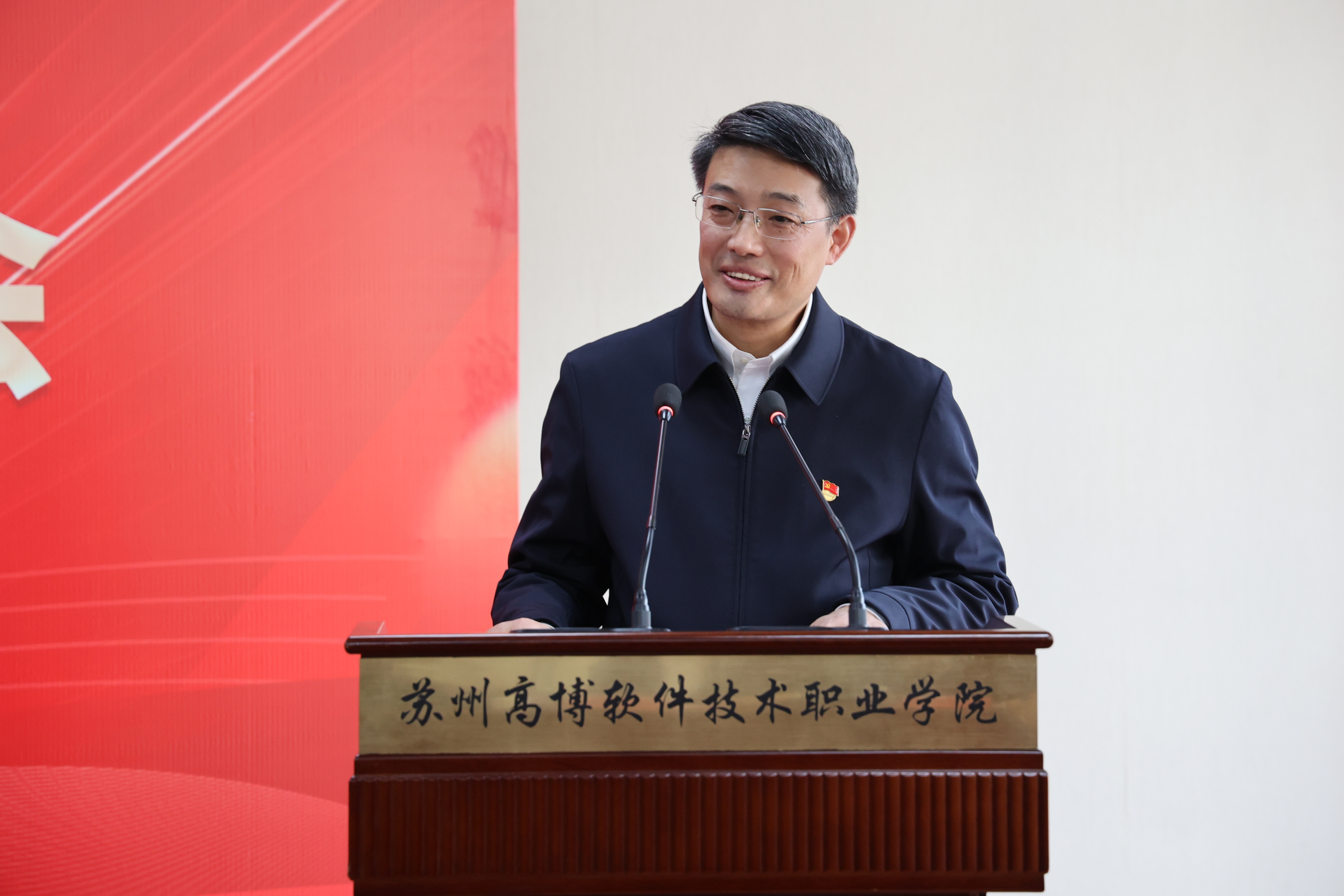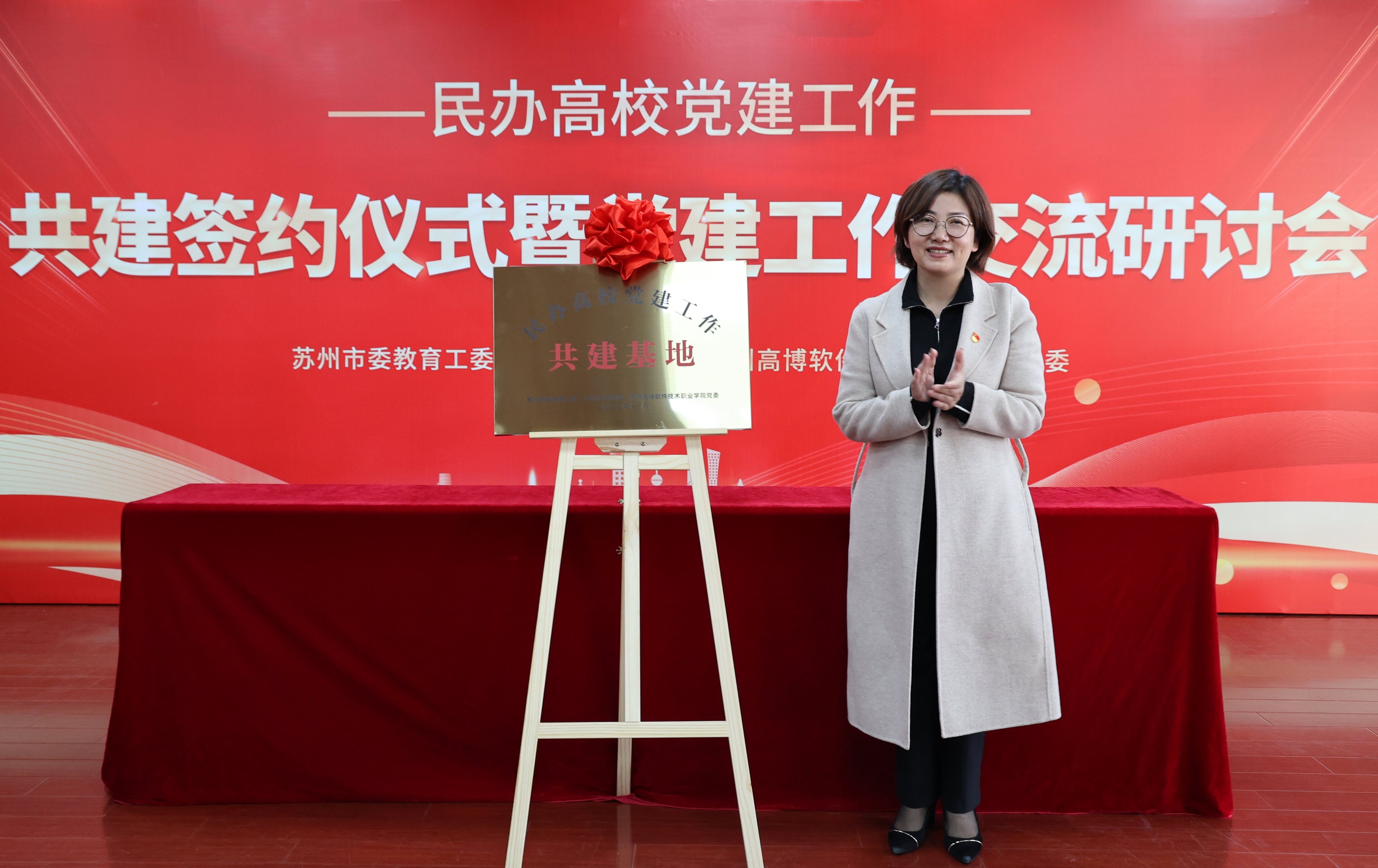 11月20日,我校与市委教育工委、苏州高博软件技术职业学院(以下简称“高博学院”)党委共同举办民办高校党建工作基地建设共建签约仪式暨党建工作交流研讨会。省委教育工委组织处处长陈艳,市委教育工委副书记徐卫,我校党委副书记邓敏,党委常委、党委组织部部长王云杰,苏州高博软件技术职业学院校长朱秀林及党委书记薛辉出席共建签约仪式。