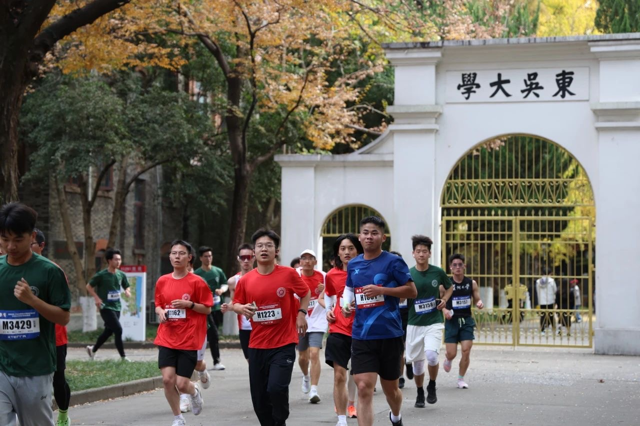 一半赛道,一半风景。今年的苏大校园马拉松赛道依旧延续了人文气息与校园风光并重的路线,参赛选手从钟楼出发途经维正堂、东吴路、存菊堂、文星东路、文星阁、苏大幼儿园、鸿远楼、光学楼、维格堂、博物馆等苏大校园标志性建筑,在奔跑中近距离体验校园深秋美景,体会“养天地正气,法古今完人”的文化内涵。