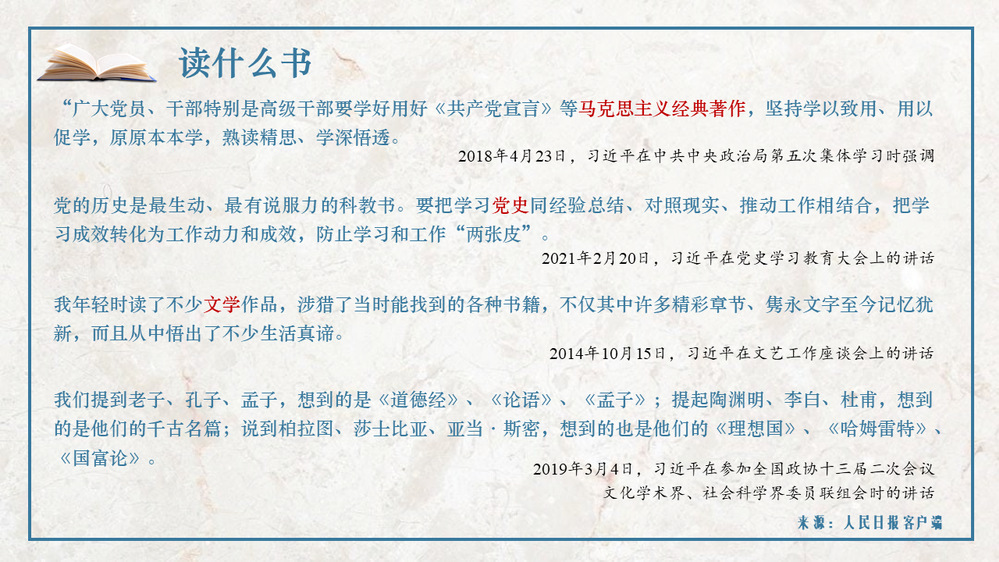 李姝君通过分享家乡故事《品读左云》,号召党员学习祖辈们的奋斗历程,传承不服输的斗争精神并融入日常科研。都春宇分享《名人传》、王春宏分享《老人与海》后,表示要“保持越是艰险越向前的英雄气概,保持敢教日月换新天的昂扬斗志”,作为光荣的科研工作者应始终积极乐观和辛勤付出。吴鹏皞以《浅薄-互联网如何毒化了我们的大脑》的分享视角,号召党员放下手机放弃快餐式快乐,拿起书本收获持续成长。