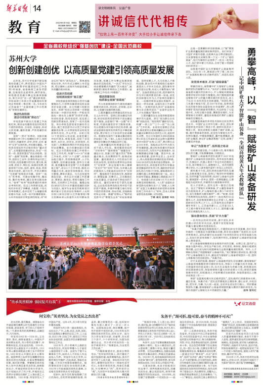 《新华日报》:苏州大学:创新创建创优 以高质量党建引领高质量发展