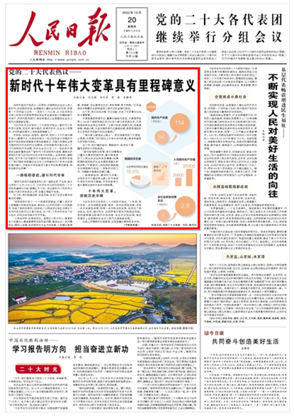 《人民日报》:党的二十大代表热议——新时代十年伟大变革具有里程碑意义 苏州大学党委书记江涌代表发出苏大声音